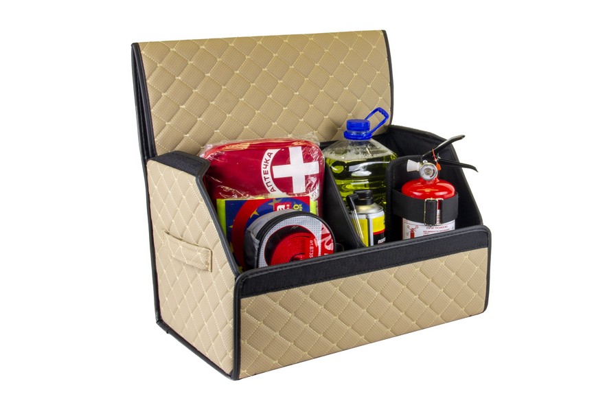 Сумка-органайзер в багажник EVAtech ECO M 30x30x50 см бежева з бежевою ниткою EHECEMIIBB