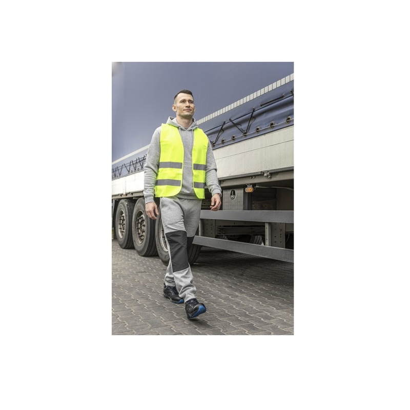 Світловідбивний жилет жовтого кольору. Широко використовуються у будівництві, автомобільному транспорті, внутрішньозаводському транспорті та різних галузях промисловості. Носиться як світловідбиваючий верхній одяг. Жилет слід носити застебнутим.
