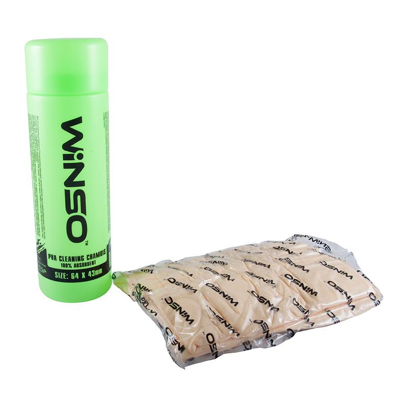 Ганчірка WINSO PVA (замша) у тубусі велика 64*43смГанчірка багаторазова універсальна вологопоглинаюча в тубі WINSO із синтетичного матеріалу. Застосовується для очищення будь-яких видів поверхонь: стекол, салону та кузова автомобіля. Ідеальна для протирання поверхонь та виробів зі скла, дзеркал, кахлів, лакованих поверхонь. Підходить для домашнього збирання, особливо для збирання пилу з меблів. Для сухого та вологого прибирання Вашого автомобіля. Прекрасні абсорбуючі властивості, супер вбирання. Завдяки тривимірній структурі мікропор збільшується поглинання в кілька разів порівняно з тканинними матеріалами. Цілком стійка до агресивних середовищ. Для чищення будь-яких видів поверхонь. Салєтка упакована в зручну пластикову тубу. Після застосування досить промити теплою водою і салфетка знову готова до застосування.