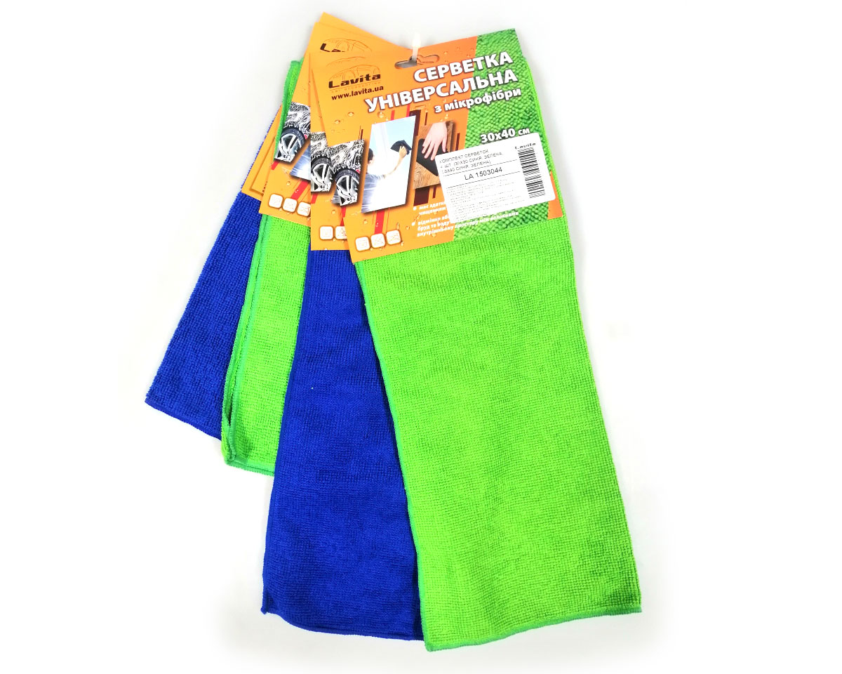 Мікрофібра рушник набір 4шт 30Х30 СИНЯ, ЗЕЛЕНА; 30Х40 СИНЯ, ЗЕЛЕНА LAVITA (LA1503044)