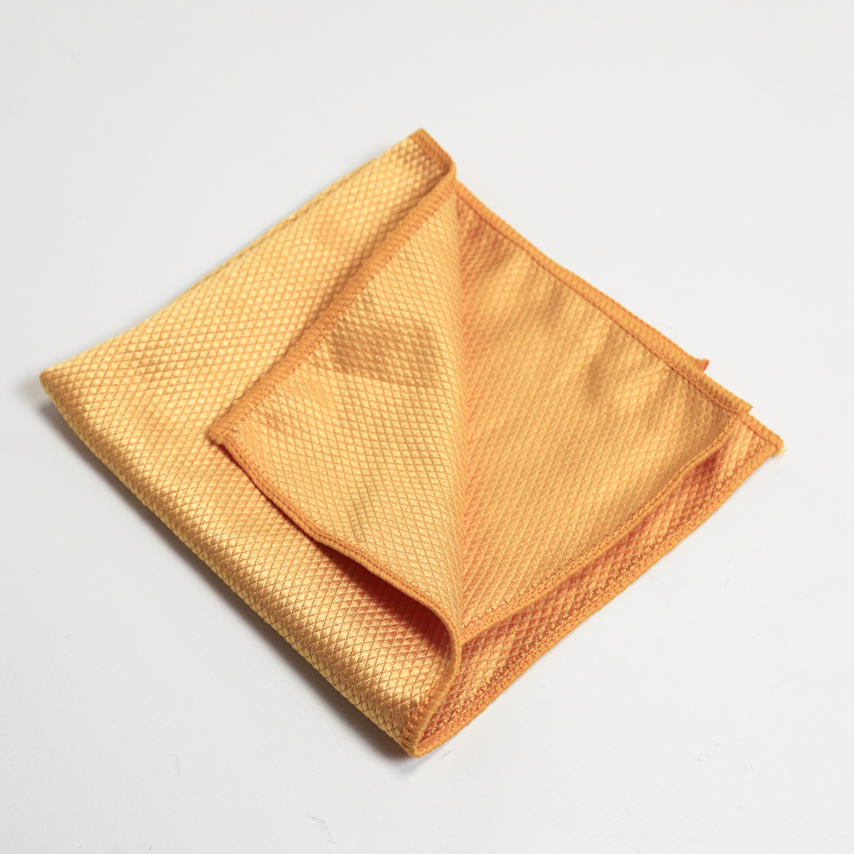 Мікрофібра для протирання скляних поверхонь без розлучень, яка за рахунок тонких шовкових ниток зшитих у ромб, не тільки очищає скло від бруду, нальоту, розводів жирових відкладень, а й якісно вбирає воду. Відмінно видаляє дитячі відбитки пальців, рук за один крок на дзеркалах та шибках. Складається із міцних тонких волокон, високої щільності, які не дряпають. Можна використовувати для сенсорних екранів та моніторів. Різна фактура із двох сторін. Відмінно працює із застосуванням складу для стекол, а також при легкому зволоженні мікрофібри.