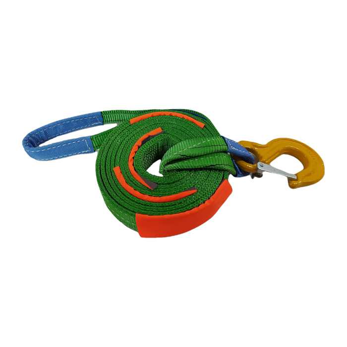Трос буксирувальний 8т. стрічка 60мм. 5м. петля-гак, 2 шари, зелений. Для міських вантажівок, малих автобусів загальною вагою до 8 000 кг (критичне навантаження 14000 кг)