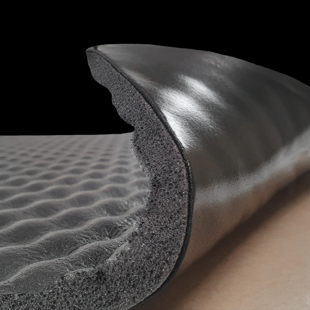 MultiWave PU – це 2-х шаровий матеріал, що одночасно має вібро-звукоізолюючі та шумопоглинаючі властивості. Матеріал на основі спіненого пінополіуретану з латексним просоченням. З одного боку має клейовий шар на полімерній основі (1,2 мм). Поєднуючи в собі феноменальну липкість та малу вагу за допомогою якого легко наноситься на поверхні навіть складної форми. З іншого боку хвилеподібна м’яка поверхня на яку нанесена тонка звукопрозора вологонепроникна поліуретанова плівка чорного кольору. Завдяки полімерній основі та вологонепроникному покриттю SoundWave PU є вологостійким матеріалом, що дозволяє використовувати його в місцях скупчення вологи (зовнішня фільонка дверей, багажник ). Хвилеподібна м’яка поверхня матеріалу служить ущільнювачем між корпусом автомобіля і пластиковими деталями салону. Завдяки латексному просоченню MultiWave довговічний та має ефект пам’яті – відновлює свою форму навіть після дуже сильного стиснення. MultiWave нетоксичний і безпечний.