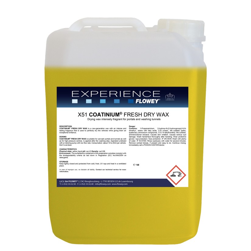 Використовуйте гарячу воду для кращого ефекту. X50/51 COATINIUM FRESH WAX підходить для автомобільних порталів і тунелів, а також для апаратів високого тиску. Може використовуватися з водою м'якої та середньої жорсткості.