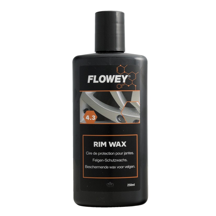 Захисний віск для колесних дисків FLOWEY RIM WAX 4.3. Захисний віск, який можна наносити безпосередньо на колісні диски. Надає блиску та забезпечує тривалий захист. Може використовуватись на всіх видах колісних дисків: алюміній, сталь, хром.