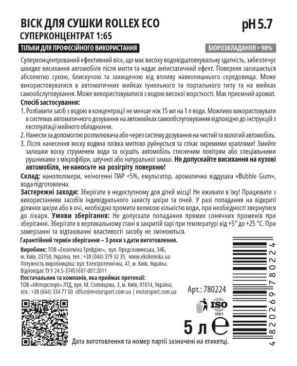 780224 Віск для сушки ROLLEX ECO 5 л концентрат (Україна)