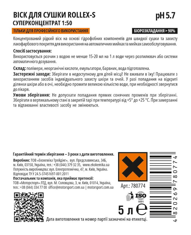 Віск для сушки ROLLEX S 1:50. 5 л Ekokemika Pro Line