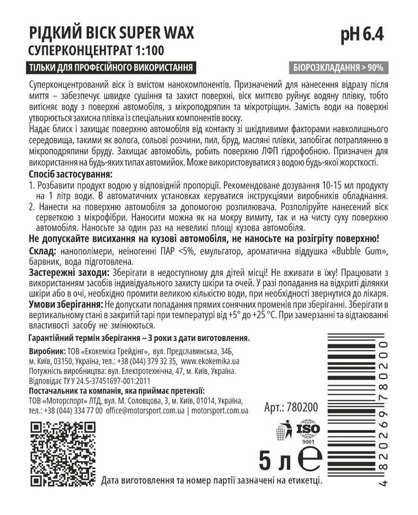 780200 Рідкий віск SUPER WAX 5 л концентрат (Україна)