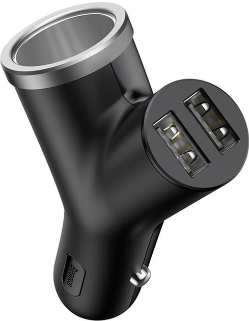 Зарядний пристрій для телефонів/планшетів від прикурювача Baseus CCALLYX01 АЗП Baseus Y type dual USB+cigarette lighter extended car charger 3.1 A Black