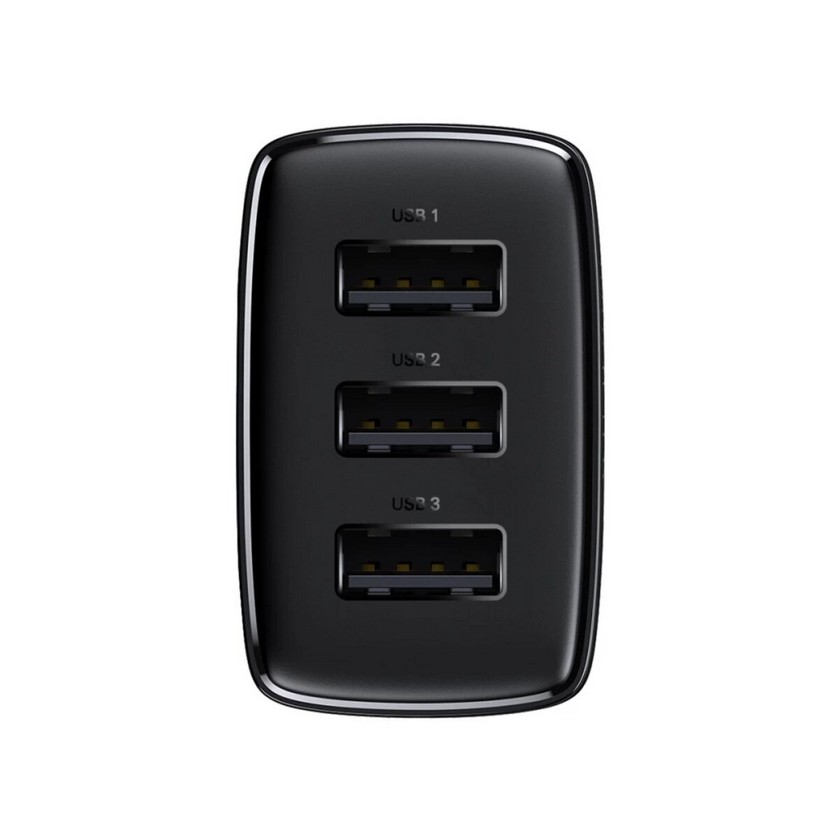 Мережевий зарядний пристрій Baseus Compact Charger 3U 17W EU Black допоможе швидко і безпечно зарядити різні гаджети: телефони, планшети, зовнішні акумулятори і т.д.
