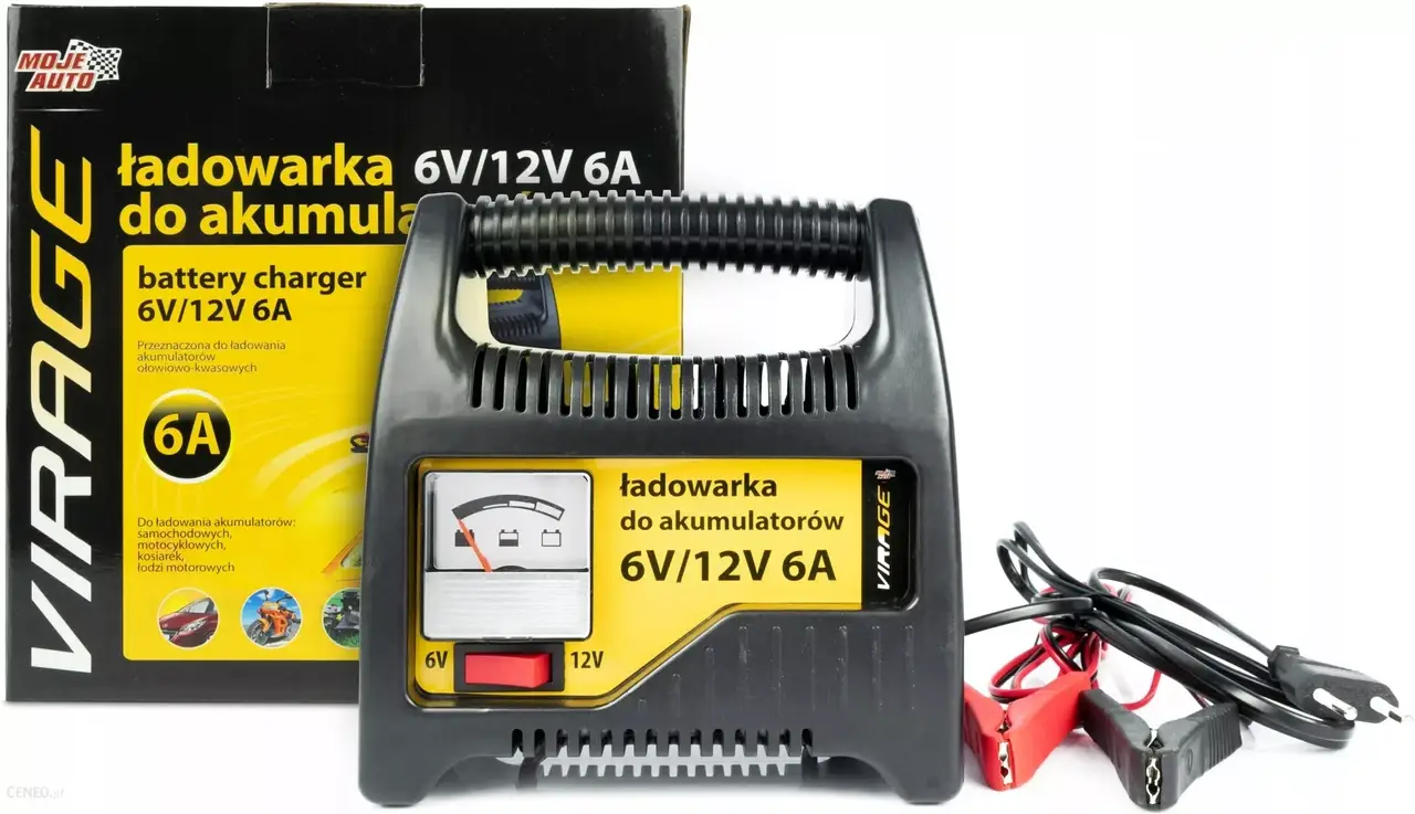Зарядний пристрій для АКБ 6V/12V 4A VIRAGE 93-039. Для зарядки свинцево-кислотних акумуляторів автомобілів, мотоциклів, моторних човнів та аналогічних транспортних засобів. Не слід використовувати для заряджання ікель-кадмієвих акумуляторів або інших типів акумуляторів. ;